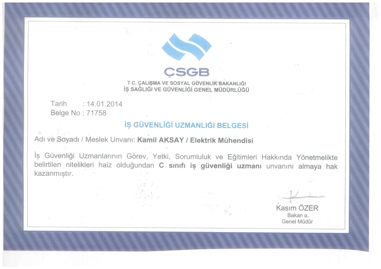 Sizlere daha iyi hizmet verebilmek için bilgimizi de belgemizi de güncel tutuyoruz.
